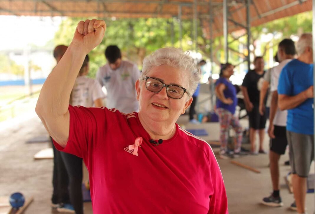 Outubro é o mês dedicado à conscientização sobre o câncer de mama, iniciativa que visa alertar a população sobre a importância da detecção precoce da doença. Com uma história de superação, Dona Maria Mirtes de 69 anos, teve câncer de mama há 19 anos e hoje é integrante do Programa RespirAR, do Governo do Amazonas. Depois de passar por todo processo de tratamento da doença, hoje participa das atividades físicas na Vila Olímpica de Manaus.