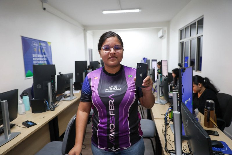 A autônoma Vitória Caroline, 22, teve o telefone celular furtado na capital amazonense, há três meses, e ao realizar o boletim de ocorrência, ela teve seu aparelho restituído, nesta quarta-feira (27/08), em mais uma ação do Programa RecuperaFone. Vitória é uma das 1.036 pessoas que teve o nome divulgado no 5º edital da Secretaria de Segurança Pública do Amazonas (SSP-AM) para restituição de celulares recuperados pelo Programa, a partir de ações das polícias Civil (PC-AM) e Militar (PMAM).