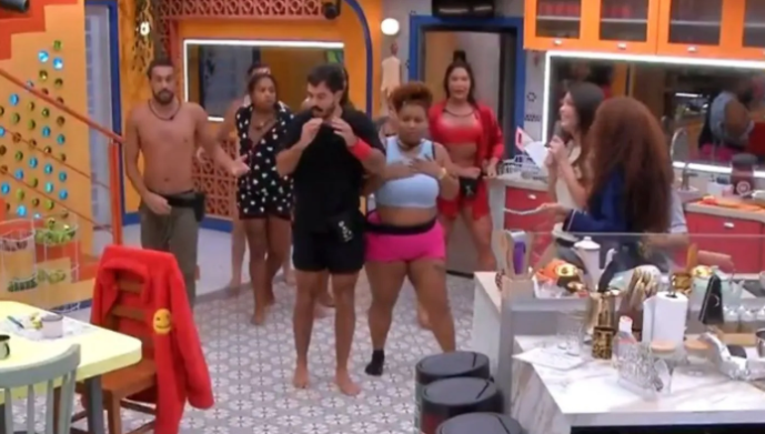 Alguns dos participantes até pegaram utensílios da cozinha para se defenderem. A tensão aumentou até que, ao chegar ao jardim, eles descobriram que se tratava de uma ação planejada pela produção.