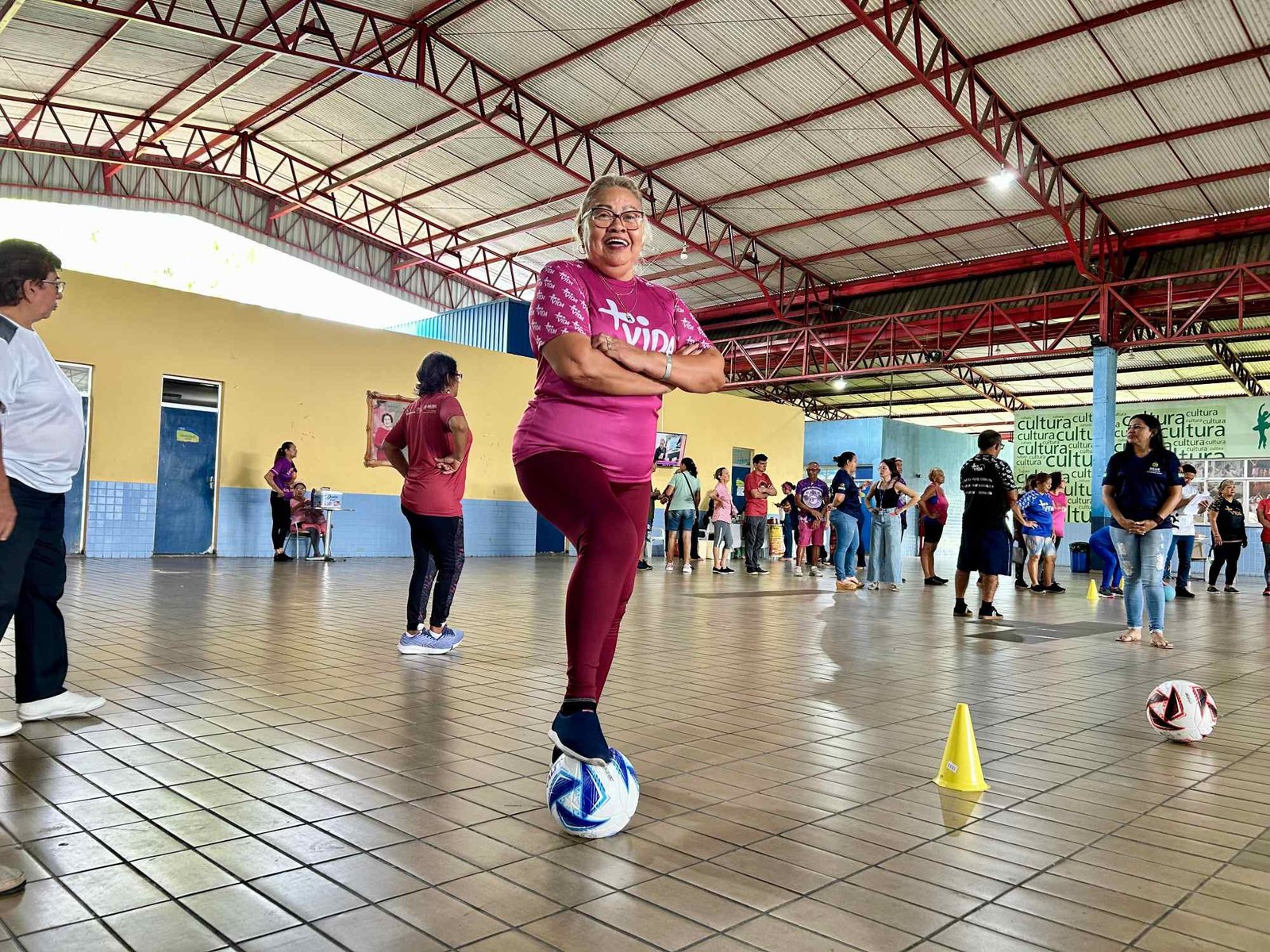“Adoro participar dessas atividades esportivas; além de salutar, me fazem conviver com outras pessoas que me fazem bem. Venho ao centro de convivência todos os dias fazer atividades, porque me sinto feliz!”, afirma.