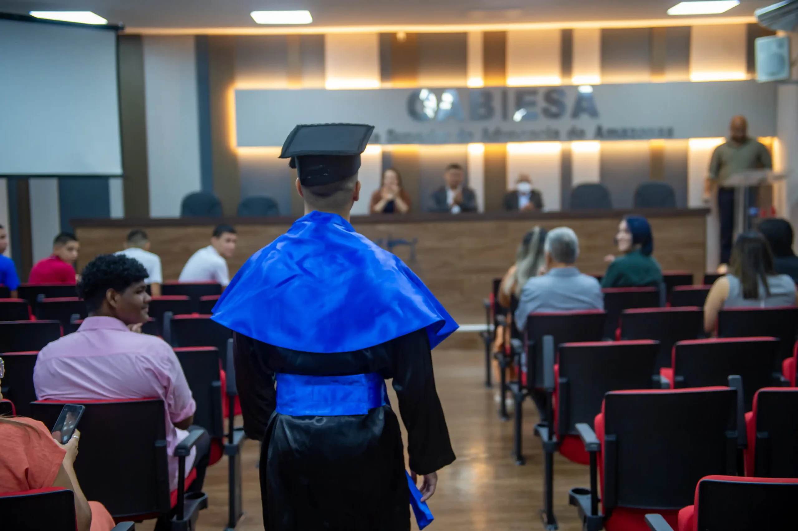 Aos 17 anos, um socioeducando interno do Centro Socioeducativo Dagmar Feitoza, administrado pela Secretaria de Estado de Justiça, Direitos Humanos e Cidadania (Sejusc), colou grau no Ensino Médio nesta segunda-feira (15/12). A cerimônia ocorreu no auditório da Escola Superior de Advocacia do Amazonas, localizado na rua São Benedito, bairro Adrianópolis, zona centro-sul de Manaus.