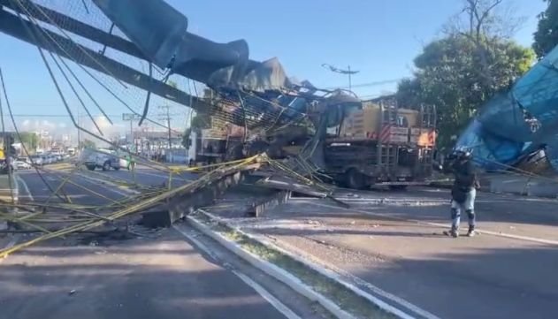A intervenção ocorre após o acidente registrado em 6 de julho de 2024, quando uma carreta-cegonha, que transportava maquinário pesado, colidiu com a antiga estrutura, ignorando a sinalização que limita o tráfego de veículos de grande porte na avenida.