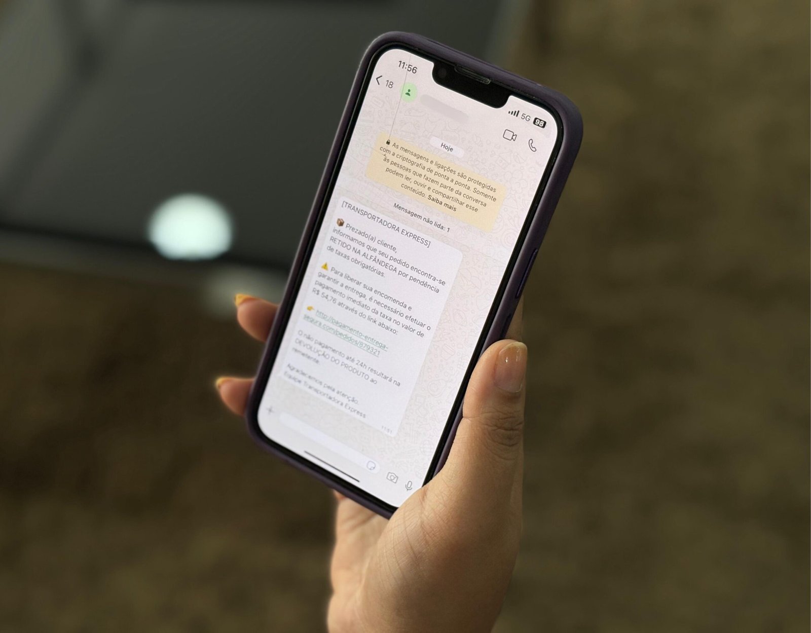 O delegado destacou ainda situações em que criminosos enviam mensagens em nome de transportadoras, alegando que o pedido está retido na alfândega. Nessas ocasiões, cobram uma taxa extra e afirmam que o produto não será entregue caso o pagamento não seja feito no prazo.