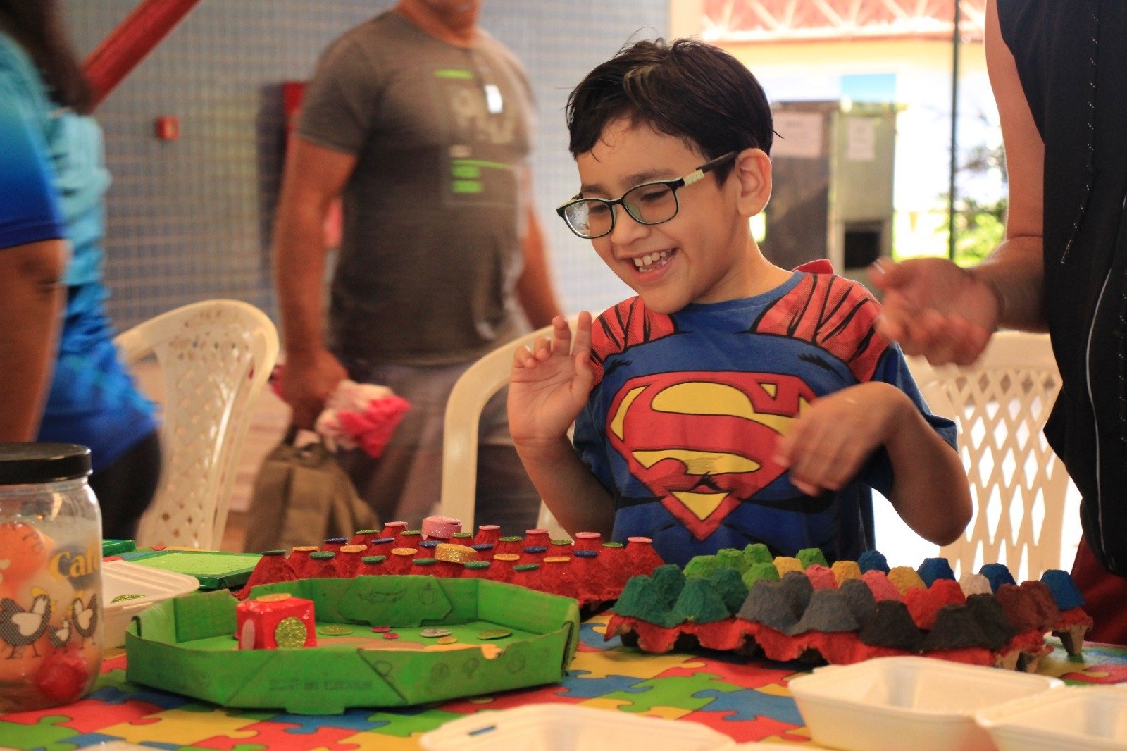Enquanto as crianças se divertiam com uma mesa sensorial – dispositivo que estimula os sentidos de uma pessoa com autismo – e outros tipos de brincadeiras com pintura, as mães participavam de atividades como massagem relaxante, escovação de cabelos, pinturas, além de um aulão de zumba e pilates.