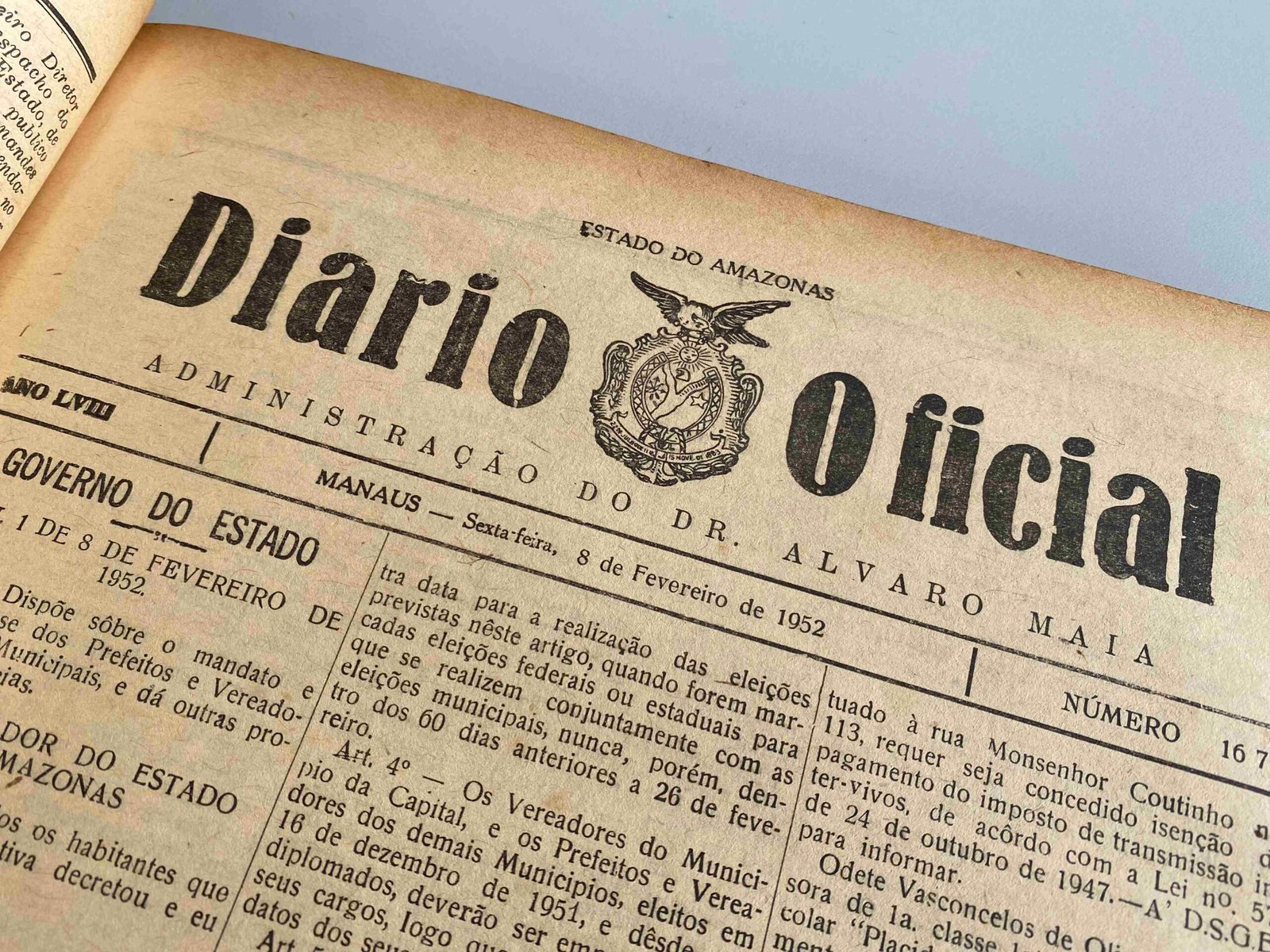 No sábado (15/11), o Diário Oficial do Estado do Amazonas (DOE) celebrará 132 anos de fundação, marcando a data em que foi impresso, em tecido de cetim, o seu primeiro exemplar. Criado em 1893, pelo governador Eduardo Gonçalves Ribeiro, o periódico deu início à transparência e à publicidade dos atos administrativos e legislativos do Estado, consolidando-se como o principal instrumento oficial de comunicação com a população amazonense.