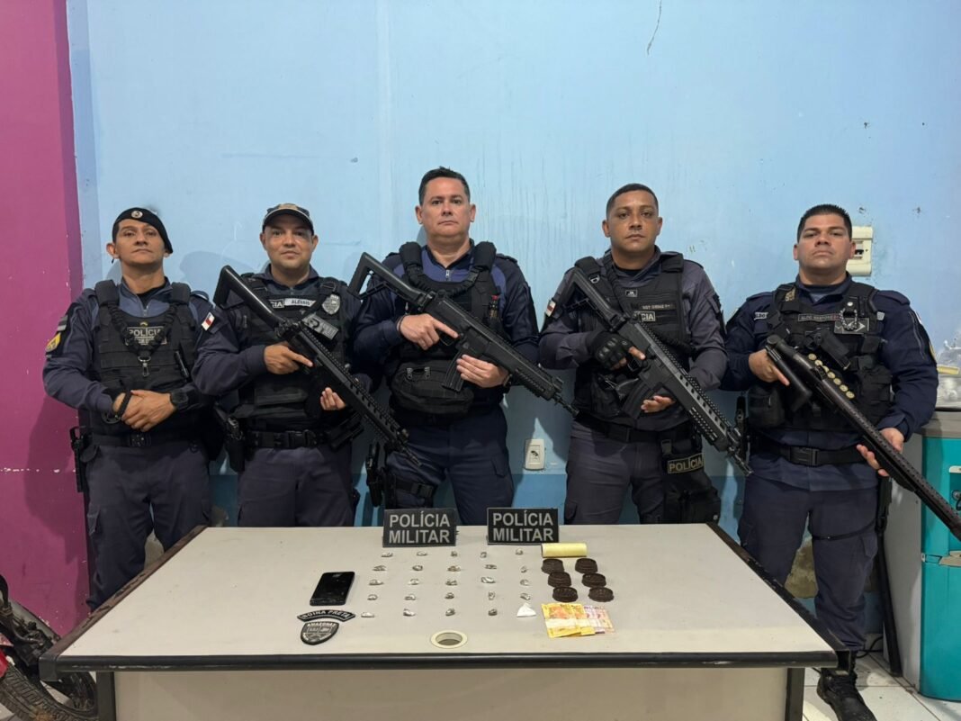 Durante operação na rua Vereador Nelson Bastos, no bairro Santa Rita, as equipes se depararam com um suspeito em posse de 162 porções de maconha tipo skunk, além de R$ 152 em espécie e três aparelhos celulares.
