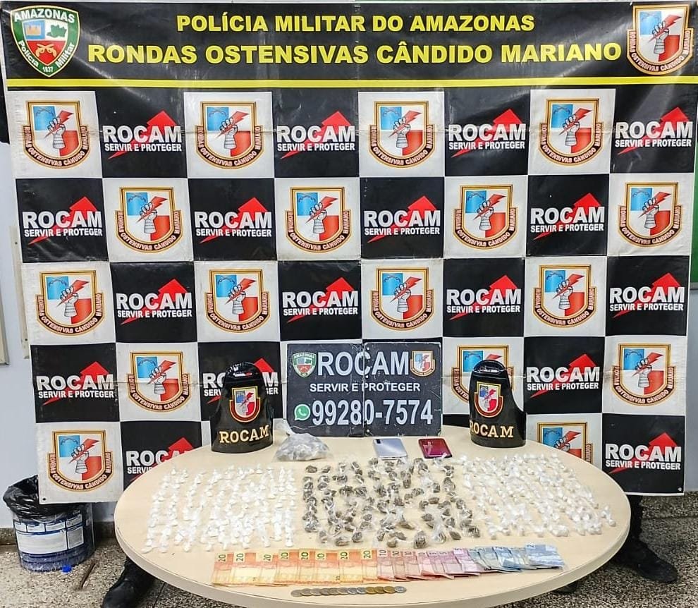 A Polícia Militar do Amazonas (PMAM), por meio das Rondas Ostensivas Cândido Mariano (Rocam), prendeu dois homens, de 22 e 41 anos, com mais 350 porções de entorpecentes, na noite de terça-feira (07/10), na comunidade Parque Riachuelo, no bairro Tarumã, zona oeste de Manaus.