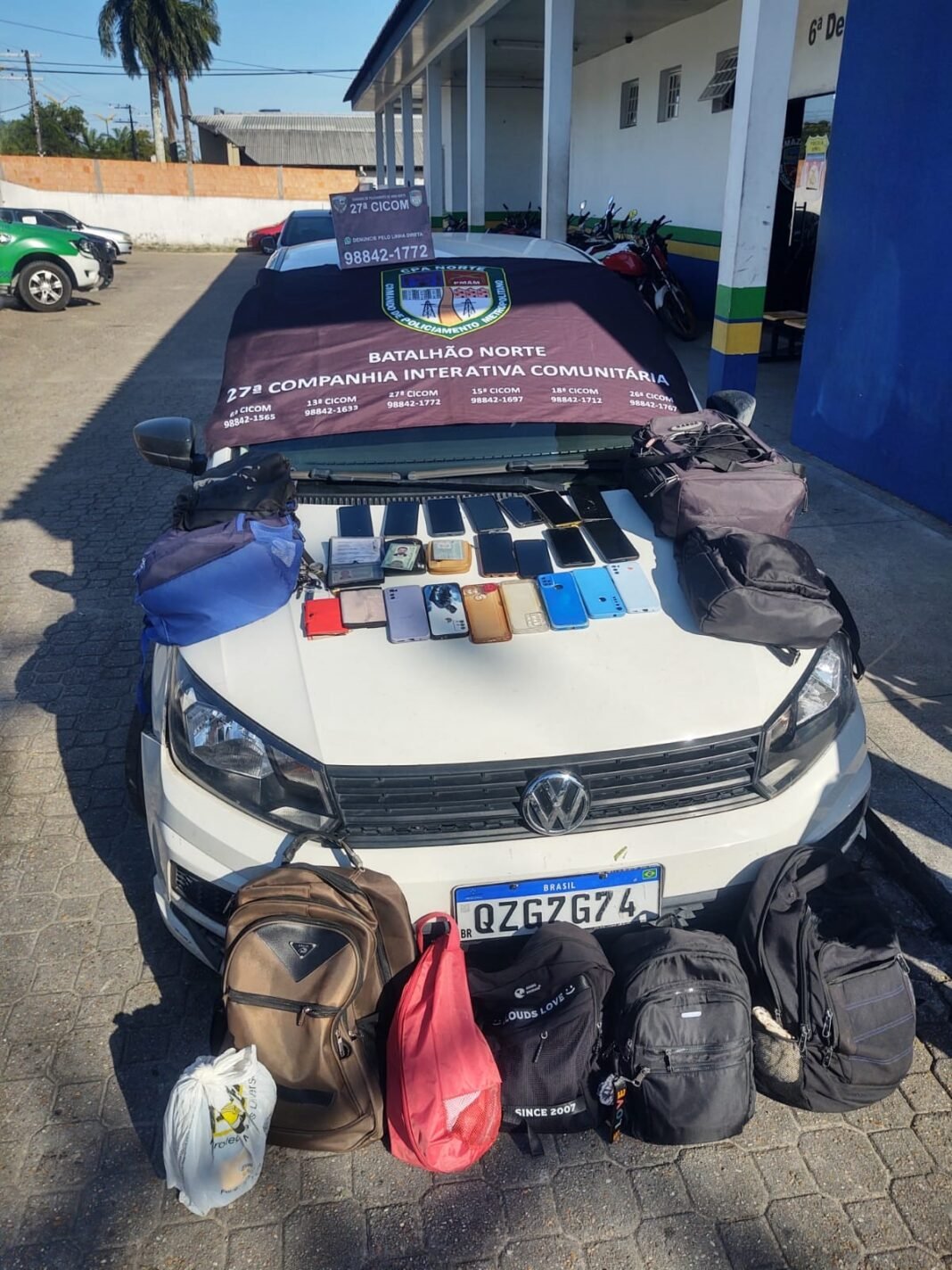 Foram apreendidos durante ação um carro, de placa QZG 7G74; uma motocicleta, de placa QZM OI55; além de 11 aparelhos celulares; três relógios, nove bolsas; e um cordão. Os veículos e os objetos recuperados foram encaminhados para o 6º Distrito Integrado de Polícia (DIP).