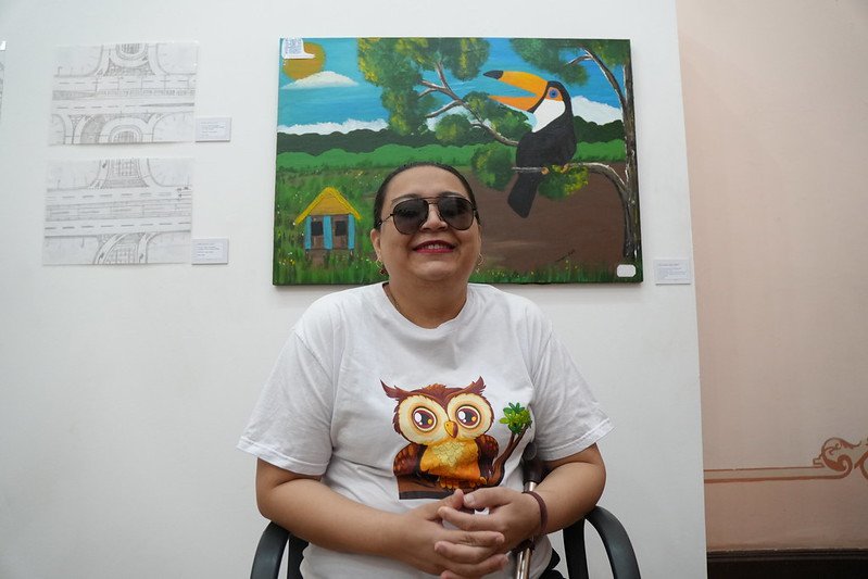 Entre os expositores, a emoção também marcou a abertura da mostra com a história da artista Marselha Cauper, deficiente visual que retrata em seu quadro a beleza da fauna e da flora amazônica, trazendo um tucano com todo o seu esplendor, e destacou a realização pessoal de integrar o evento.