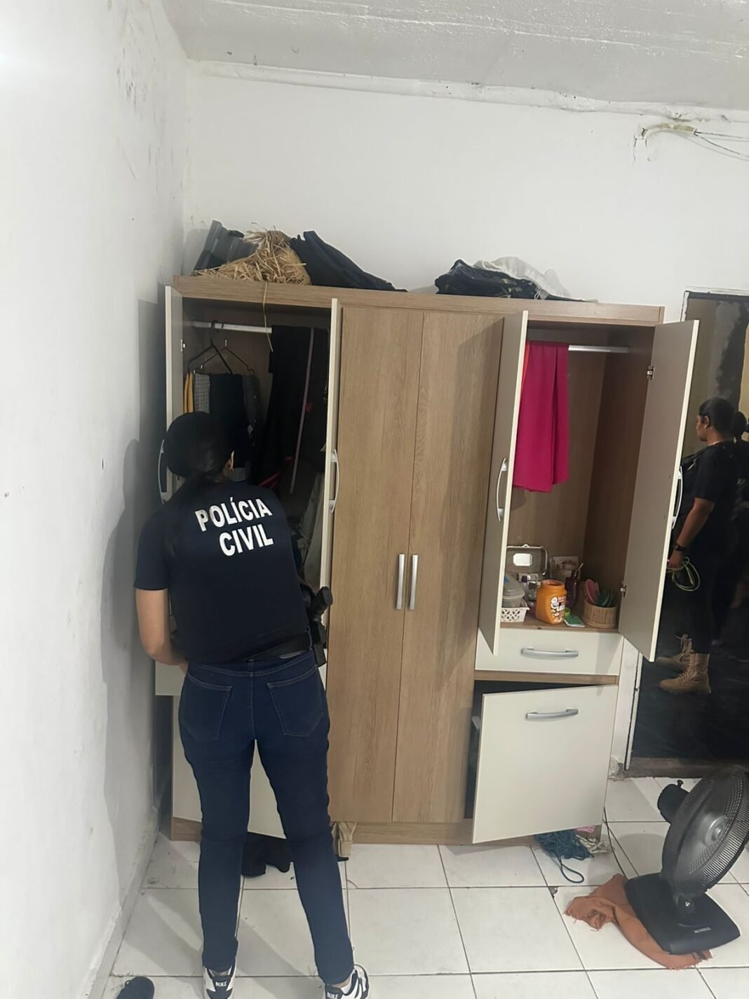 Além dos cumprimentos de mandados de prisões preventivas em nome dos pais da vítima, a atual companheira do homem foi presa em flagrante por armazenar, em seu telefone, materiais pornográficos.