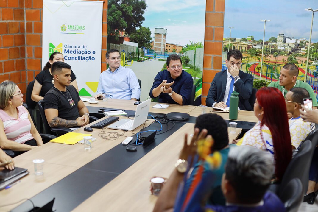 O encontro reuniu lideranças comunitárias, representantes da Sedurb e Unidade Gestora de Projetos Especiais (UGPE), da Procuradoria Geral do Estado (PGE-AM), da Superintendência Estadual de Habitação (Suhab) e da Defensoria Pública do Estado (DPE-AM).