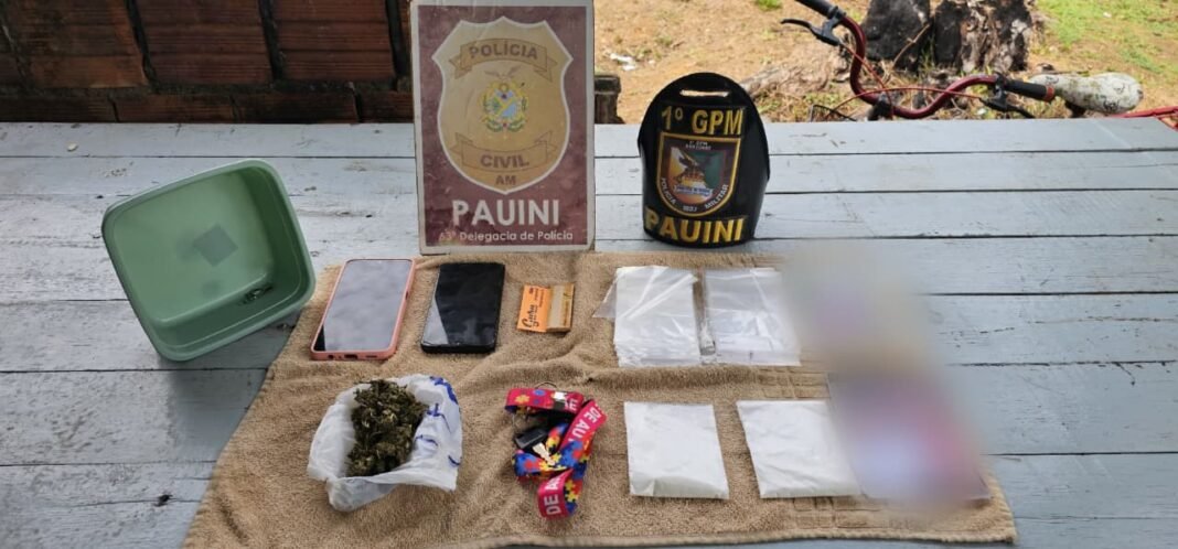 A Polícia Civil do Amazonas (PC-AM), por meio da 63ª Delegacia Interativa de Polícia (DIP) de Pauini (a 923 quilômetros de Manaus), em ação conjunta com a Polícia Militar do Amazonas (PMAM), cumpriu, nesta sexta-feira (19/09), mandado de busca e apreensão que resultou na prisão em flagrante de um homem de 20 anos, pelo crime de tráfico de drogas.