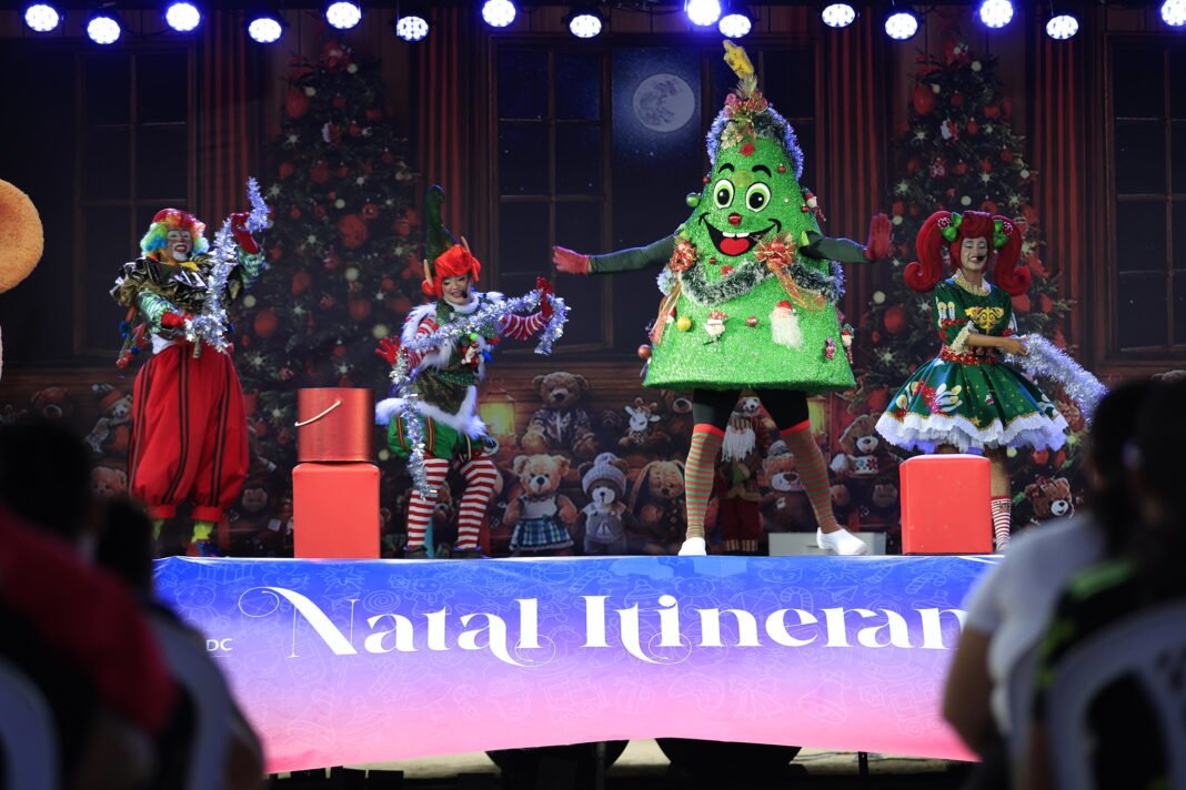 O Governo do Estado, por meio da Secretaria de Estado de Cultura e Economia Criativa e do Fundo de Promoção Social (FPS), em parceria com a Cosama, deu início, na quinta-feira (05/12), à programação do Natal Itinerante, que descentraliza as ações do “Mundo Encantado do Natal 2024”, levando a magia do Natal para diversos bairros e zonas da cidade. A primeira edição de 2024 foi no Campo do Teixeirão, no bairro Jorge Teixeira, zona Leste de Manaus.