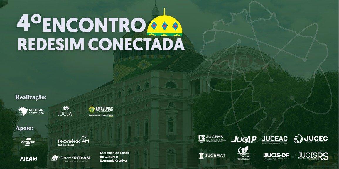 A Junta Comercial do Estado do Amazonas (Jucea) será anfitriã do 4º Encontro Redesim Conectada, que reunirá juntas comerciais integrantes do Convênio Redesim Conectada, entre os dias 15 e 17 de outubro, em Manaus. A programação ocorrerá na Federação das Indústrias do Estado do Amazonas (Fieam) e na sede do Serviço Brasileiro de Apoio às Micro e Pequenas Empresas (Sebrae AM).