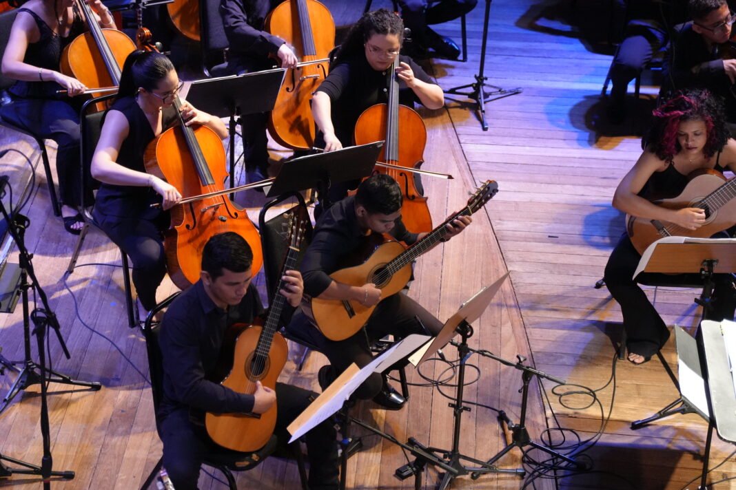 Encerrando as comemorações pelos 25 anos da Orquestra de Violões do Amazonas (Ovam), o Teatro Amazonas recebeu, na noite de quinta-feira (06/11), o concerto “Sacro II”, sob regência do maestro Davi Nunes. O espetáculo marcou o encerramento de um ciclo comemorativo que, ao longo do ano, destacou a trajetória da orquestra e sua contribuição para a cena musical amazonense.