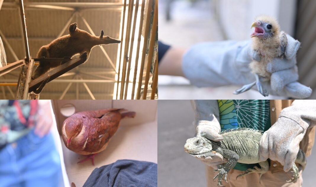 O Instituto de Proteção Ambiental do Amazonas (Ipaam) realizou, na segunda-feira (1º/09), o resgate de cinco animais silvestres encontrados em diferentes bairros de Manaus. Foram recolhidos um pariri (Geotrygon montana), uma iguana (Iguana iguana), dois filhotes de gavião-pedrês (Rupornis magnirostris) e um tamanduá (Tamandua tetradactyla).
