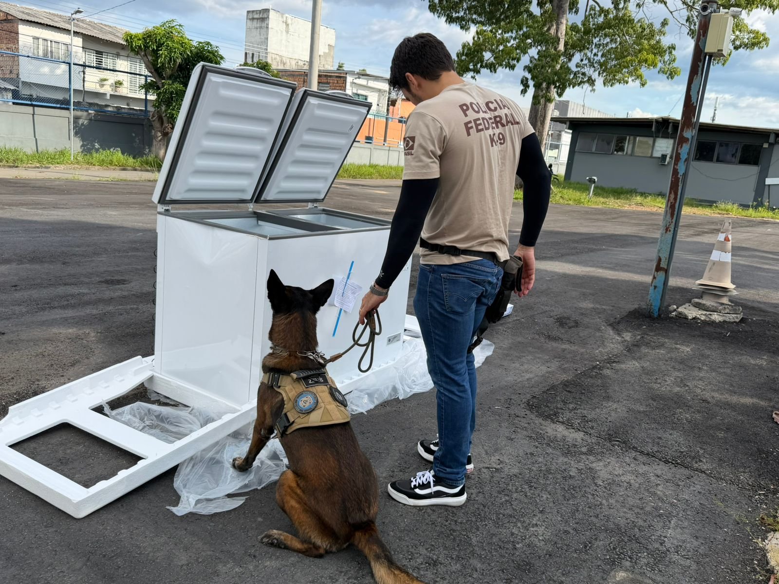 Com o apoio de cão farejador da Polícia Federal, foram localizados tabletes de drogas ocultos nas paredes de freezers acondicionados no baú do caminhão. Durante a ação, foram apreendidos 182 kg de maconha, além de duas pistolas calibre 9 mm com numeração raspada, carregadores e munições calibre 9 mm.