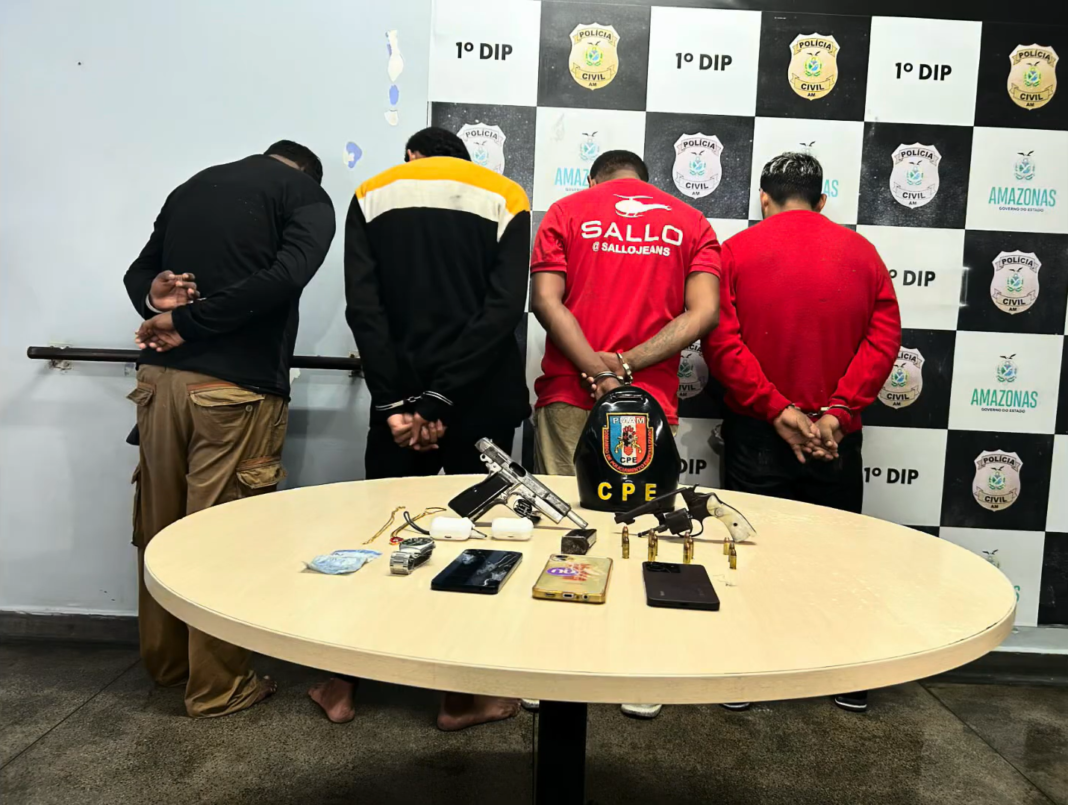 Os homens tentaram fugir pulando o muro da área de trás do estabelecimento. O quarteto e as armas de fogo, usadas para render e ameaçar os funcionários da loja, foram encaminhados ao 1º Distrito Integrado de Polícia (DIP).