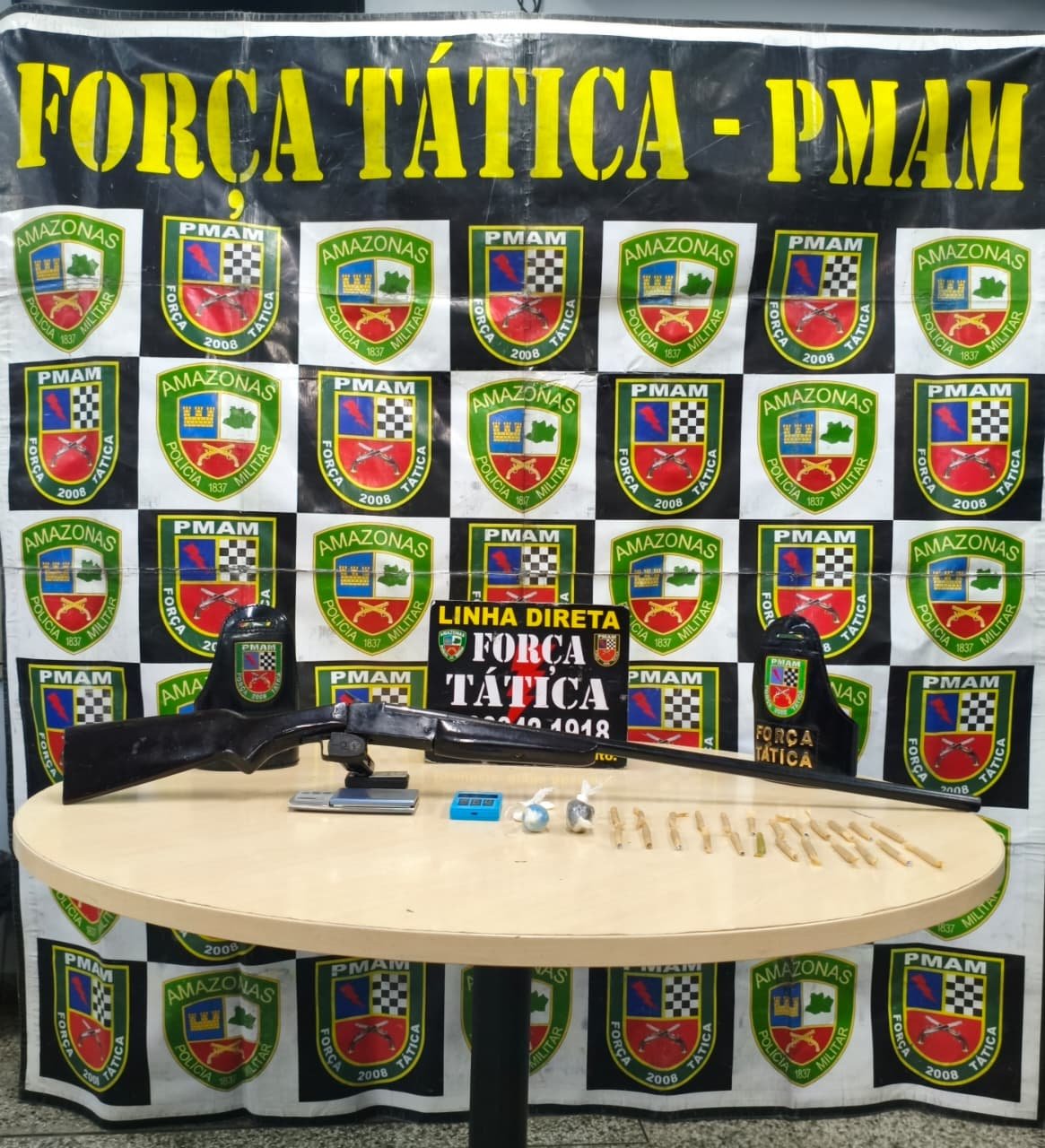 A Polícia Militar do Amazonas (PMAM), por meio da Força Tática, apreendeu uma espingarda de fabricação caseira, 24 cigarros de maconha e outros materiais ilícitos, na tarde de quarta-feira (12/11), no bairro Tarumã-Açu, zona oeste de Manaus.