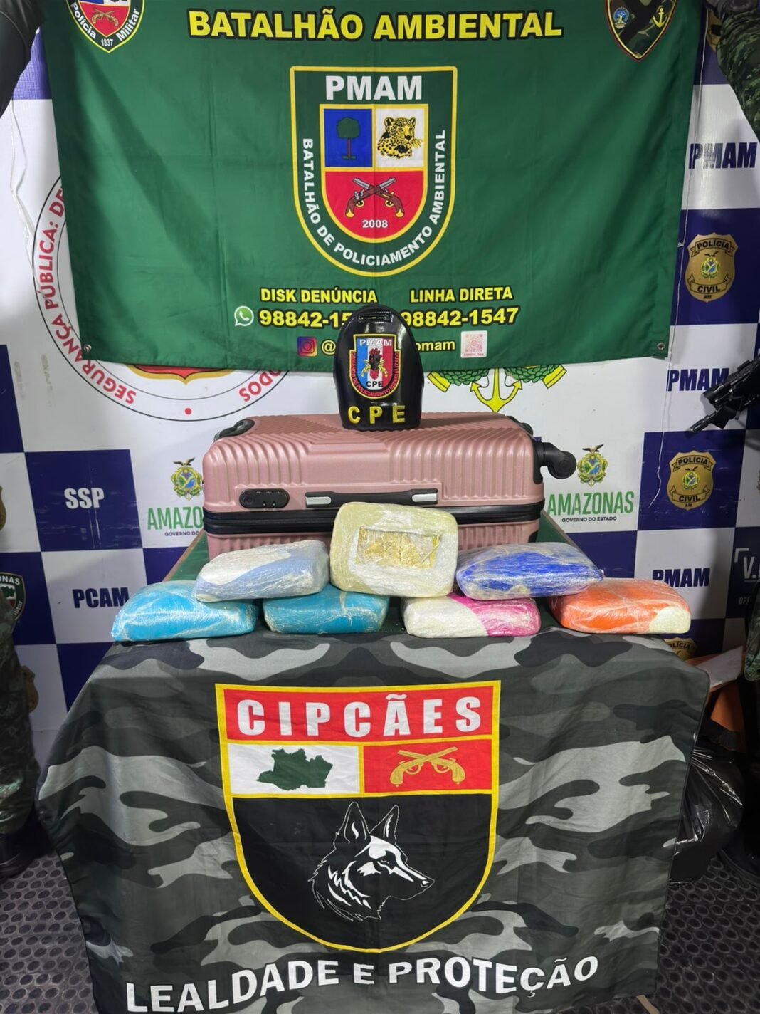 A abordagem foi realizada na embarcação GM de Oliveira, por volta das 19h, por policiais do Batalhão de Policiamento Ambiental (BPAmb), coordenados pela Secretaria de Segurança (SSP-AM). Durante o procedimento, a PMAM com apoio do cão Xerife, da Companhia Independente de Policiamento com Cães (Cipcāes), sinalizou a suspeita de haver entorpecente na mala da mulher.