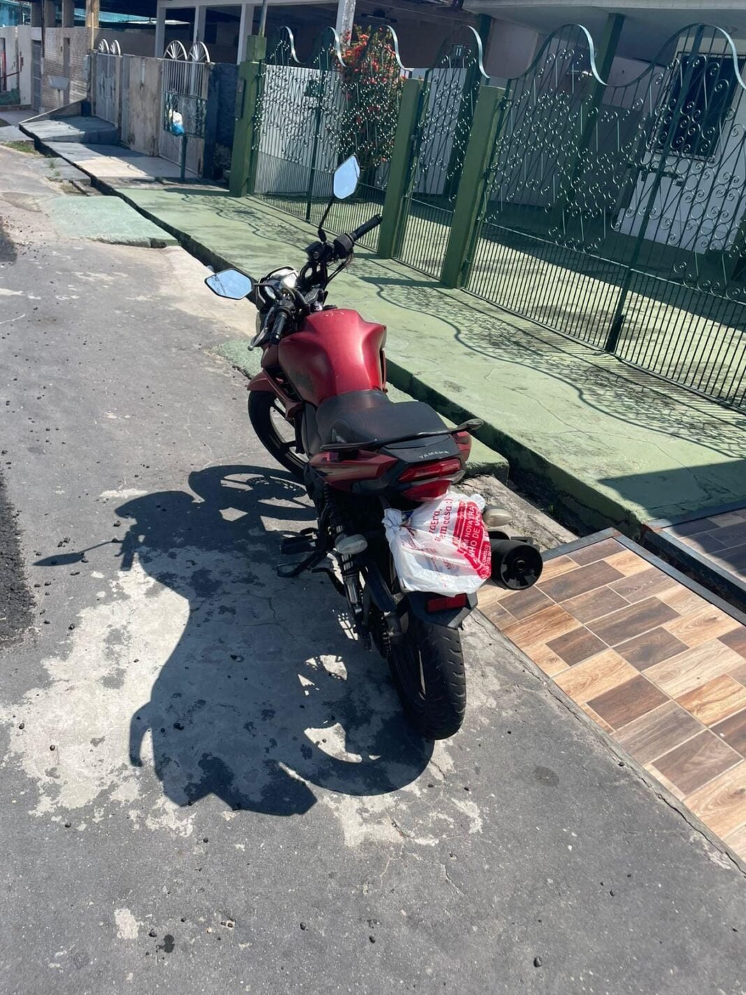Com a dupla também foi apreendido uma motocicleta Yamaha YS150, que circulava com a placa coberta por uma sacola plástica. Ambas, juntamente com o material apreendido, foram conduzidas ao 6º Distrito Integrado de Polícia (DIP).
