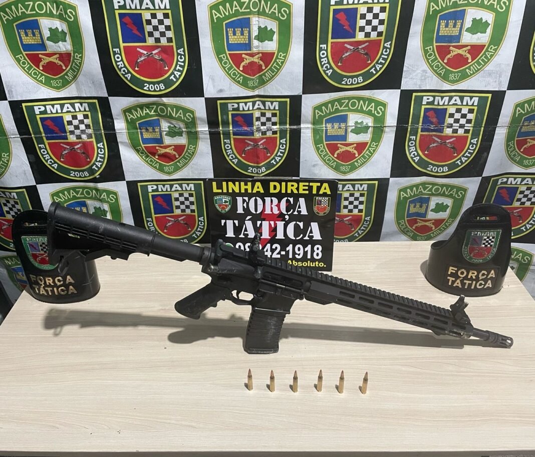 A Polícia Militar do Amazonas (PMAM), por meio da Força Tática, apreendeu um armamento de guerra, na noite de terça-feira (25/03), em área de mata localizada no Conjunto Viver Melhor, na zona norte de Manaus.