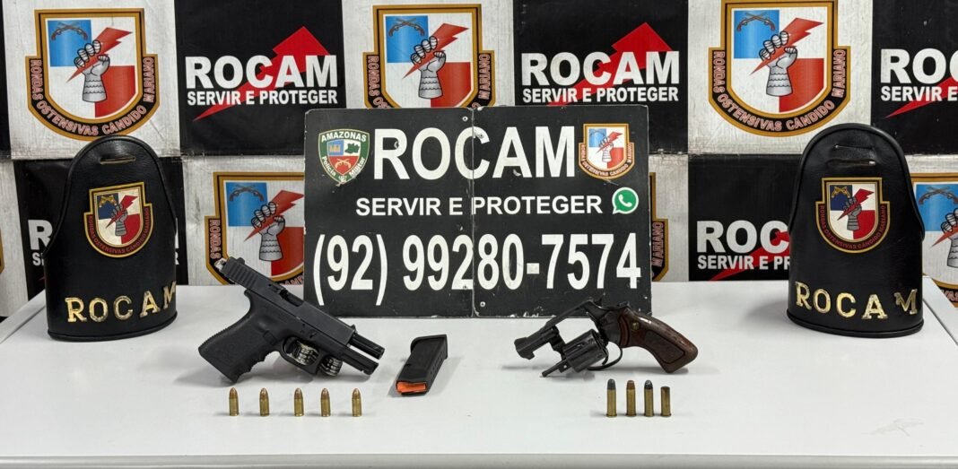 Na madrugada desta quinta-feira, durante patrulhamento no bairro Tarumã, PMs das Rondas Ostensivas Cândido Mariano (Rocam) receberam informações de populares de que na rua 9, havia um grupo de homens armados, em uma área de mata. No local, os suspeitos fugiram quando perceberam a aproximação dos PMs, abandonando duas armas de fogo, sendo uma pistola e um revólver, além de nove munições de diferentes calibres.