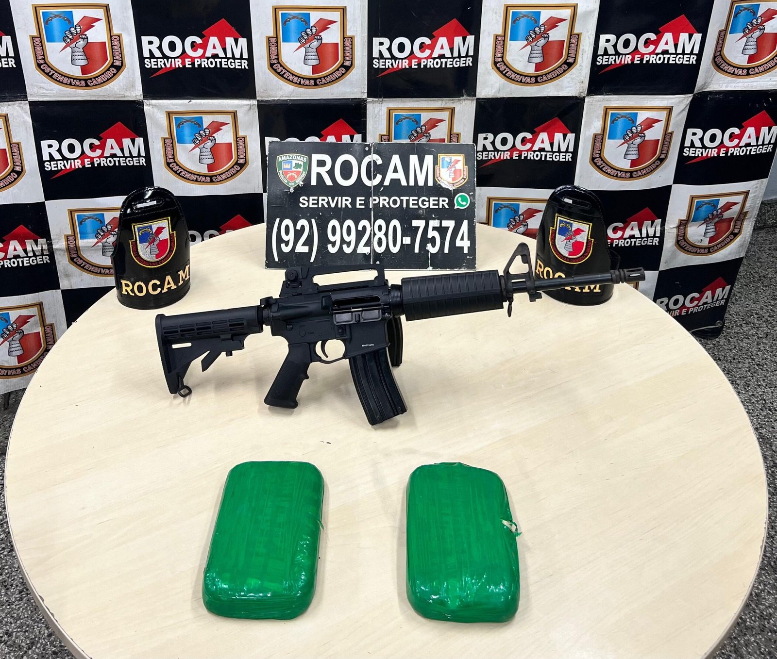 A Polícia Militar do Amazonas (PMAM), por meio do Rondas Ostensivas Cândido Mariano (Rocam), prendeu um homem, de idade não informada, e apreendeu um fuzil e dois tabletes de entorpecente, na terça-feira (30/09), no bairro Tarumã, zona oeste de Manaus.