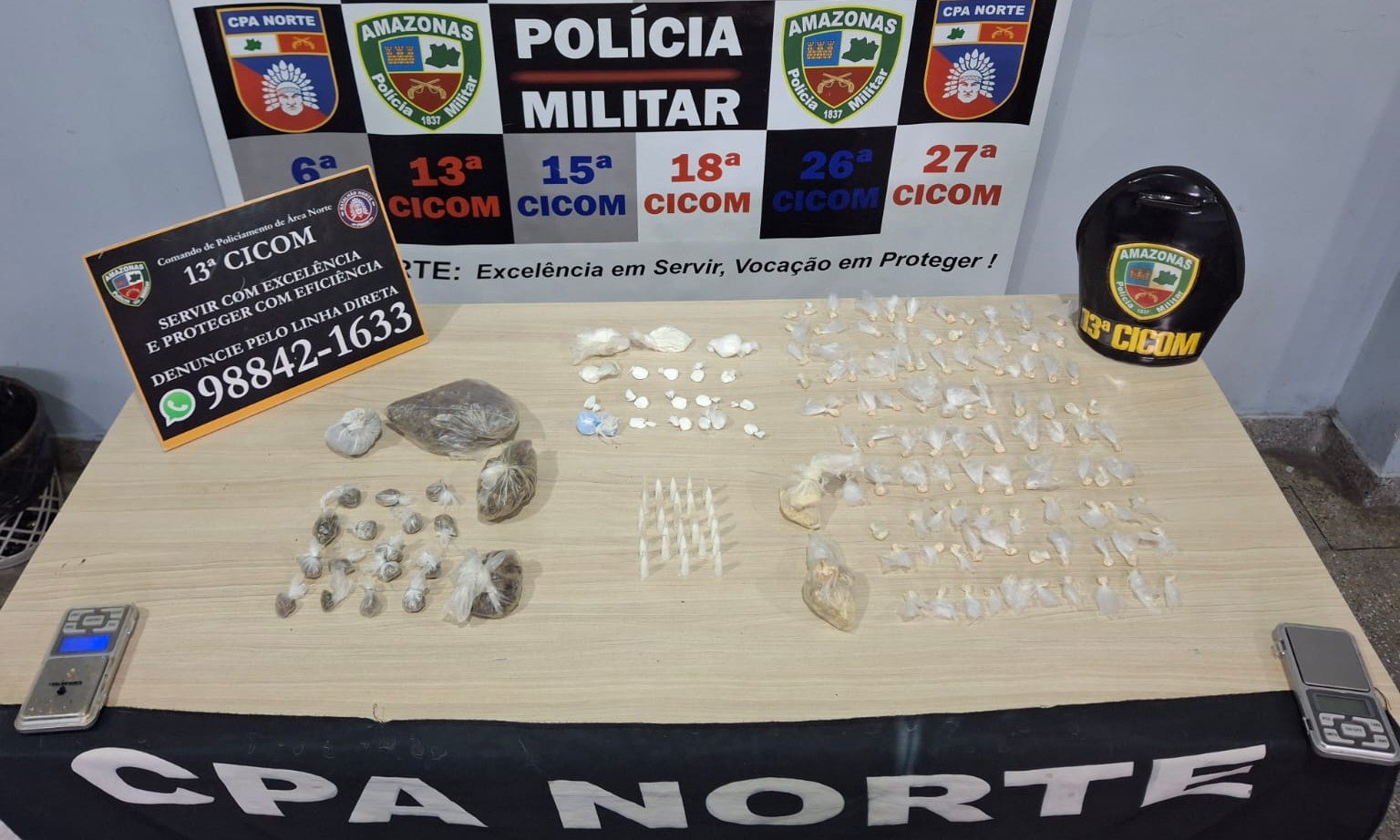 A Polícia Militar do Amazonas (PMAM) prendeu um homem e apreendeu mais de 100 trouxinhas de drogas, durante ações na terça-feira (19/08), nos bairros Cidade de Deus, zona norte, e Coroado, zona leste de Manaus.