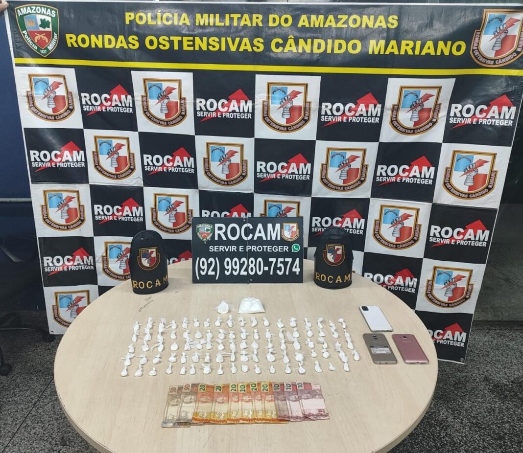 Os policiais militares das Rondas Ostensivas Cândido Mariano (Rocam) prenderam dois homens, de 27 e 32 anos, na madrugada desta sexta-feira por volta das 3h20, após denúncias informando movimentação de venda de drogas na rua Isaac, comunidade Celebridade, bairro Colônia Terra Nova.