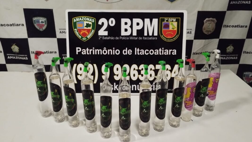 Entretanto, ao revistarem o porta-malas do táxi, os PMs encontraram uma caixa lacrada, dentro dela estavam 12 frascos de 250 mililitros (ml) cada, onde estava armazenado um líquido transparente, conhecido como “Loló”.