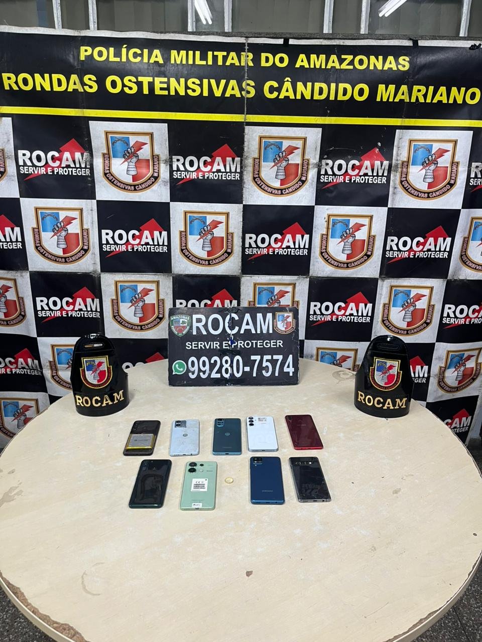 A Polícia Militar do Amazonas (PMAM), por meio das Rondas Ostensivas Cândido Mariano (Rocam), durante cumprimento da Operação Rota Segura, prendeu dois homens, envolvidos em arrastões a rotas do transporte do Distrito Industrial, na manhã desta sexta-feira (10/10). A ação policial foi efetuada na zona leste e resultou na recuperação de nove aparelhos celulares roubados.