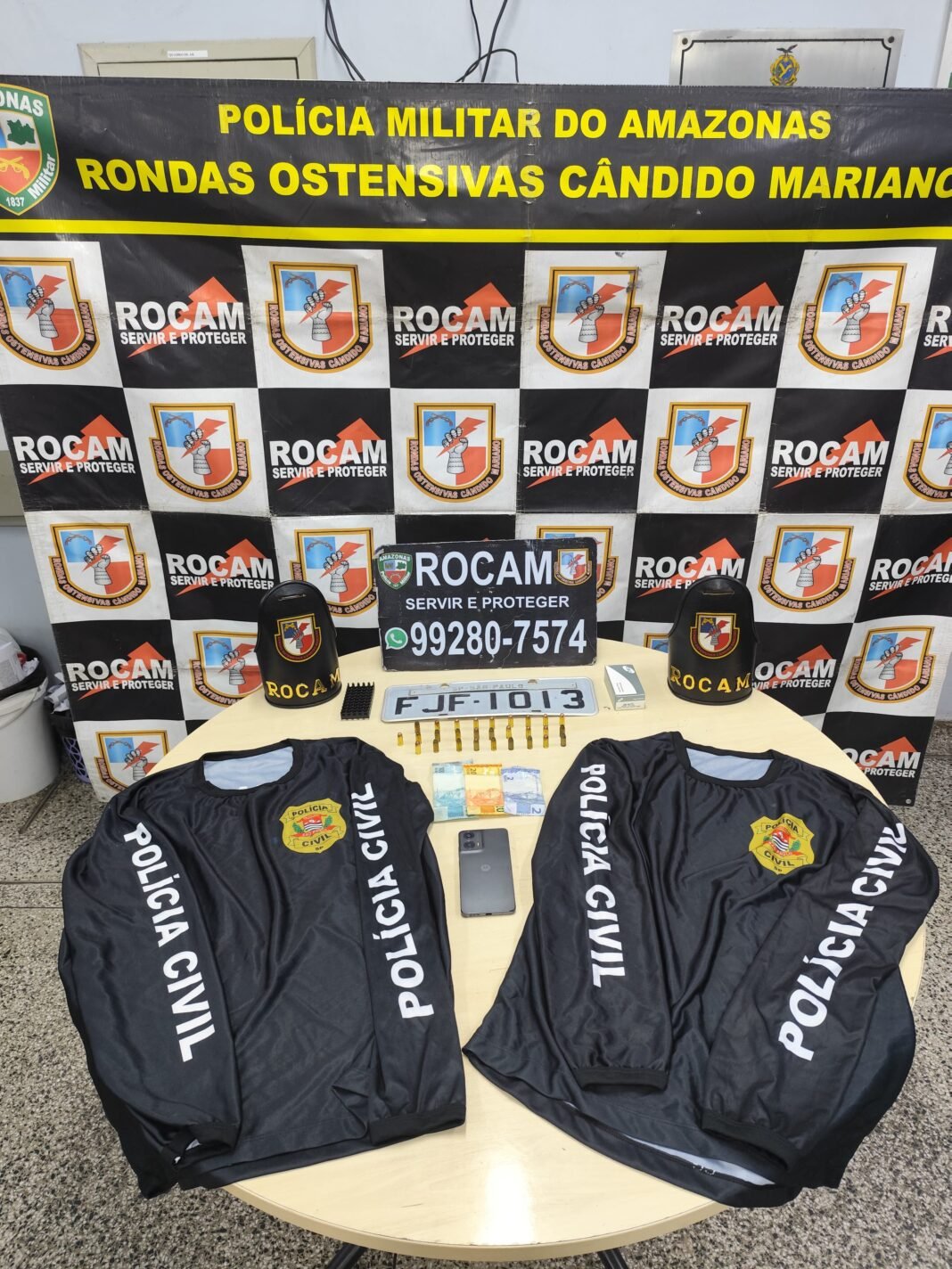 A Polícia Militar do Amazonas (PMAM), por meio das Rondas Ostensivas Cândido Mariano (Rocam), prendeu um homem, de idade não informada, com munições e duas camisas com identificação da Polícia Civil do estado de São Paulo. A ocorrência foi registrada na noite de domingo (09/03), no bairro Ponta Negra, zona oeste da capital amazonense.