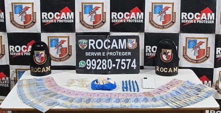 Por volta das 21h50, os PMs da Rocam receberam denúncia de populares de que havia um movimento intenso do tráfico de drogas na rua Cinco. Ao chegar ao local, a equipe policial encontrou um homem e durante revista pessoal encontrou alguns entorpecentes.