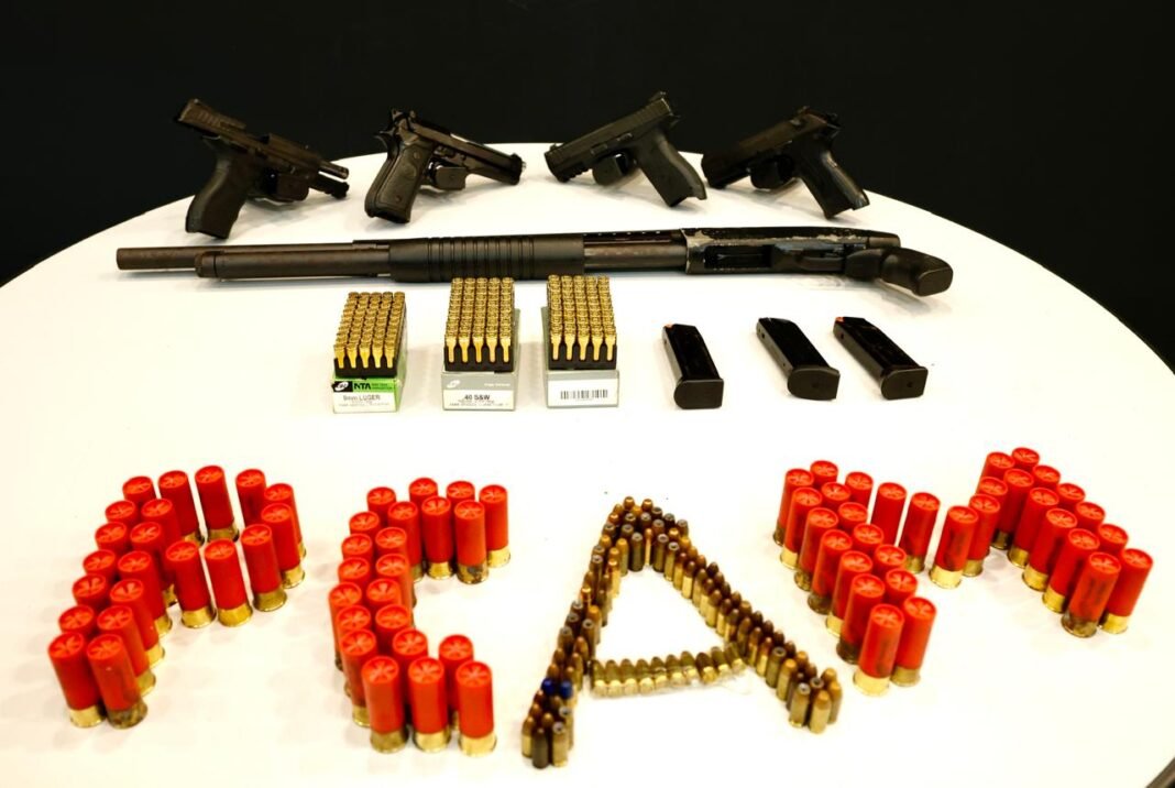 Durante a abordagem, foi possível cumprir seis mandados de prisão decorrentes de sentenças condenatórias. Na ação, também foram apreendidas diversas armas de fogo, entre elas quatro pistolas, dois calibres 9mm e .40, uma escopeta calibre 12, além de entorpecentes do tipo cocaína, balanças de precisão e duas identidades falsas utilizadas pelo suspeito.