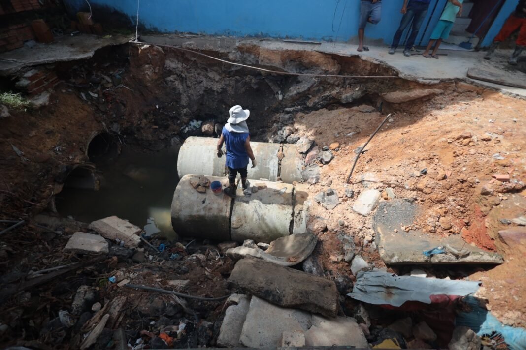 A tubulação rompeu pela falta de reforço na estrutura, uma vez que na década passada os tubos não possuíam ferro, eram confeccionados apenas em concreto. A equipe atua na substituição das antigas manilhas por novas, em concreto armado e ferro, uma tecnologia mais moderna que terá uma vida útil muito maior.