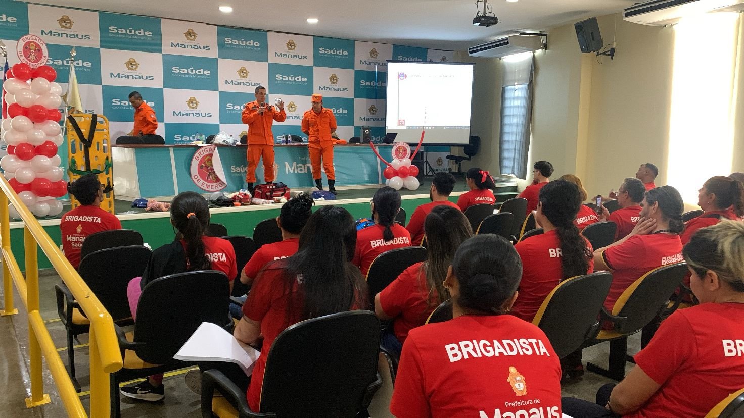 A Prefeitura de Manaus iniciou, nesta terça-feira, 25/3, o treinamento de brigada de incêndio para mais de 90 servidores da Secretaria Municipal de Saúde (Semsa). A formação segue até a quinta-feira, 27/3, com atividades teóricas e práticas realizadas no auditório Dr. Deodato de Miranda Leão e no estacionamento anexo da sede da secretaria, situada no bairro Adrianópolis, zona Centro-Sul.