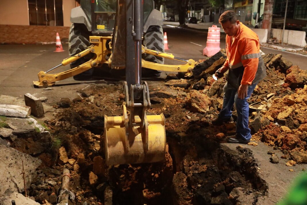 A Prefeitura de Manaus, por meio da Secretaria Municipal de Infraestrutura (Seminf), executa mais uma obra noturna com a recuperação de uma rede de drenagem, na segunda-feira, 28/4, na zona Sul da capital.