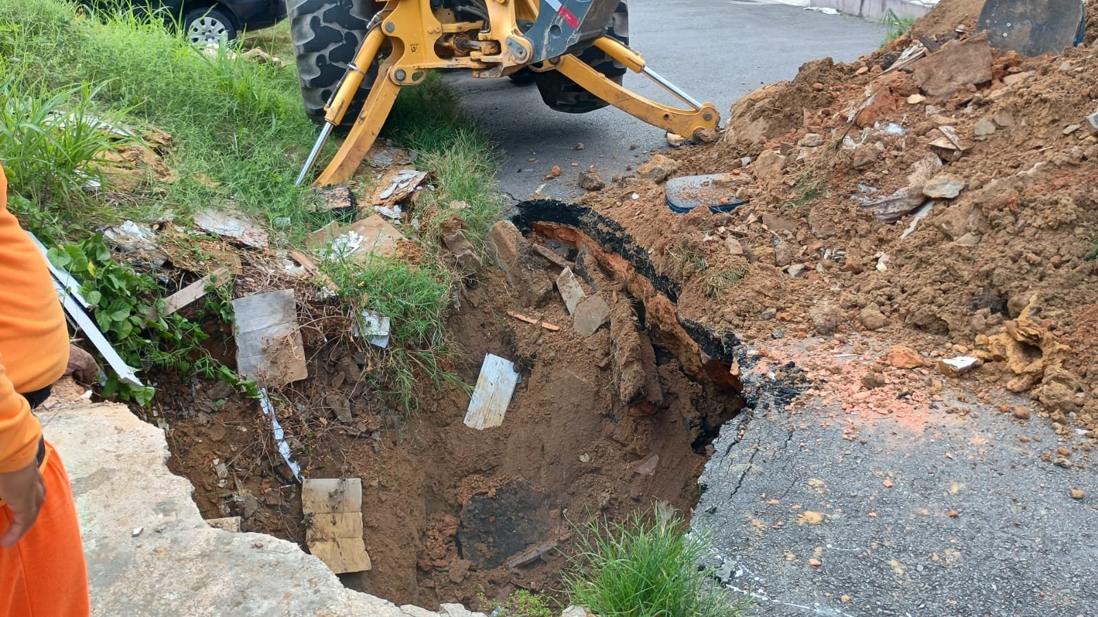 A equipe identificou uma cratera se formando no trecho e, de forma imediata, realizou a vistoria no local. Neste momento, dez trabalhadores atuam com o apoio de uma retroescavadeira para fazer a remoção dos tubos que estavam desgastados pelo tempo e implantar uma média de cinco novos tubos, mais modernos e duradouros. Na sequência será feita a recuperação do meio-fio.