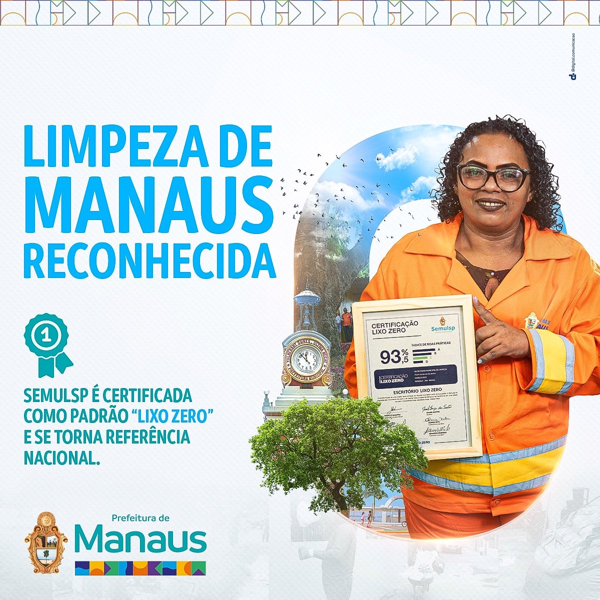 Quem cuida bem de casa, cuida bem da cidade. É por isso que a Prefeitura de Manaus é exemplo nacionalmente. Agora, o reconhecimento vem com a certificação “Lixo Zero”, pelo trabalho realizado dentro da Secretaria Municipal de Limpeza Urbana (Semulsp), a primeira do país, na redução da quantidade de resíduos sólidos gerados dentro do órgão, garantindo a eles a destinação correta – práticas que gradualmente serão expandidas para a cidade.