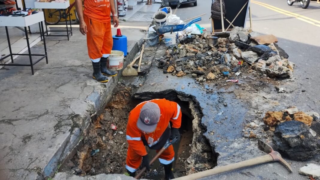 A Prefeitura de Manaus, por meio da Secretaria Municipal de Infraestrutura (Seminf), realizou, nesta segunda-feira, 7/7, uma intervenção emergencial na rua Izaurina da Silva Braga, no bairro Compensa, zona Oeste da capital. A ação consistiu na substituição de tubos comprometidos do sistema de drenagem profunda, por peças novas e modernas, com o objetivo de restaurar o escoamento adequado das águas pluviais e evitar futuros alagamentos na área.