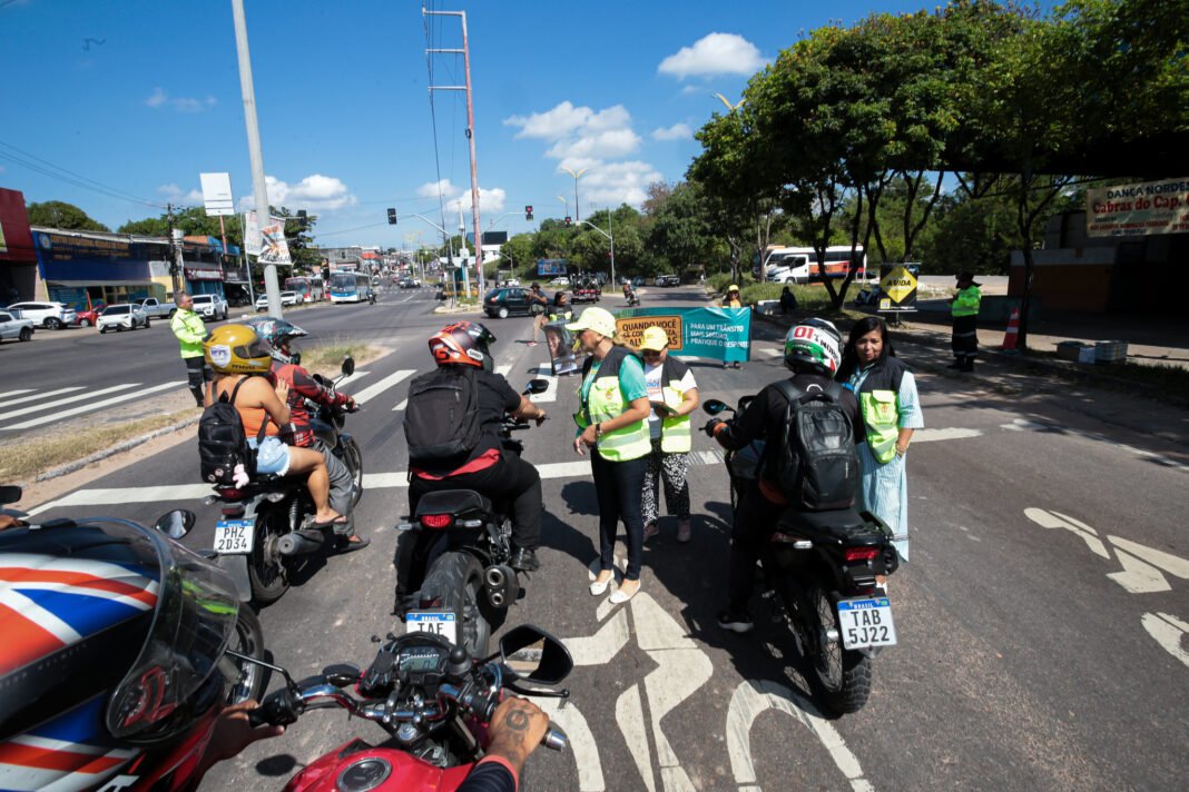 Em alusão à Semana Nacional de Prevenção a Acidentes com Motociclistas, a Prefeitura de Manaus, por meio do Instituto Municipal de Mobilidade Urbana (IMMU), realizou, na manhã desta quinta-feira, 24/7, uma ação educativa voltada a motociclistas, para orientar sobre o uso correto da área de espera exclusiva à frente dos veículos nos semáforos. A atividade foi realizada na avenida Cosme Ferreira, em frente à feira do Coroado, na zona Leste da capital.