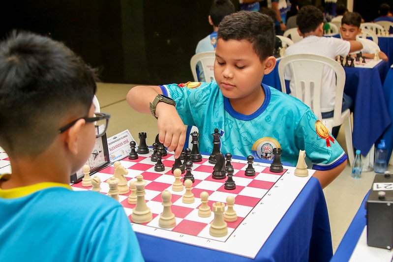 Estudantes do 1º ao 8º ano do ensino fundamental da Prefeitura de Manaus participaram, nesta segunda-feira, 16/6, da fase final da modalidade de xadrez, nas categorias mirim, infantil e juvenil, nos naipes masculino e feminino, durante a 26ª edição da Municipíadas, promovida pela Secretaria Municipal de Educação (Semed). A programação ocorreu na arena da Amazônia, com as disputas da categoria mirim. Já na quarta-feira, 18/6, a competição continua com os jogos das categorias infantil e juvenil, também nos dois naipes.