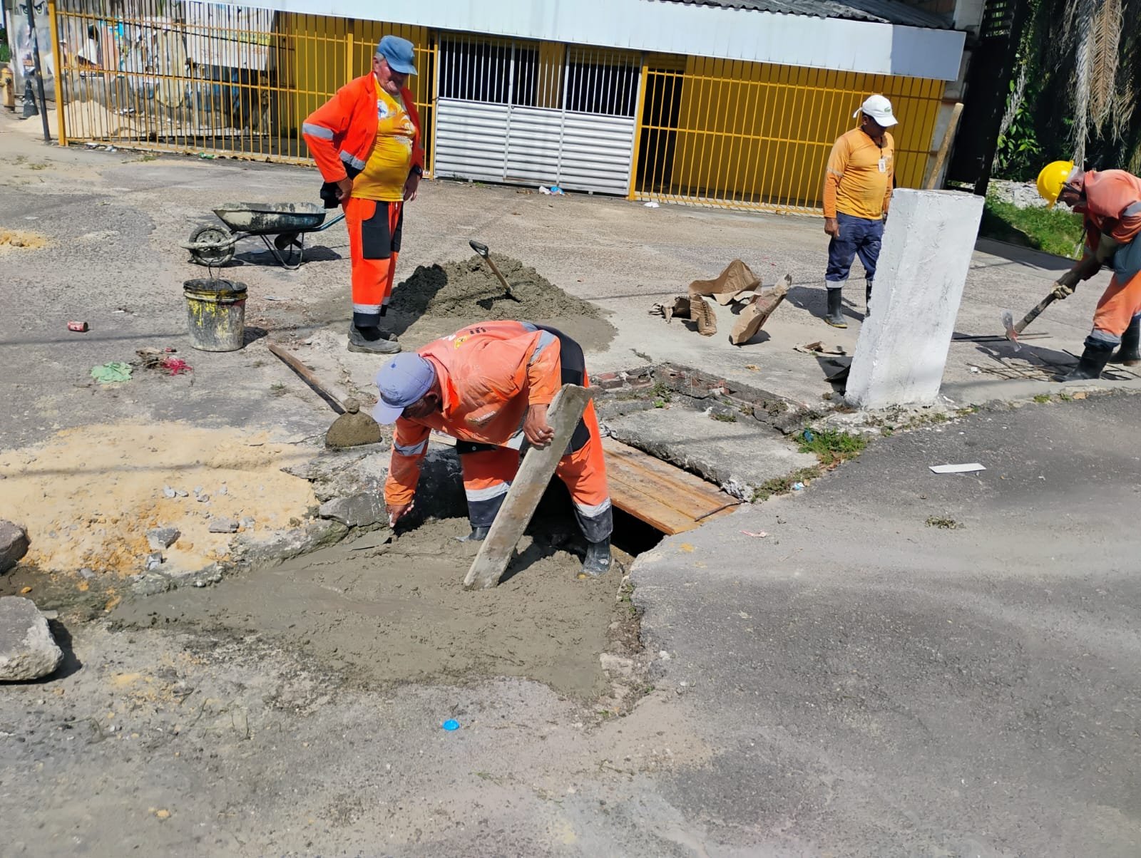 Prefeitura recupera dissipador e tampa de caixa coletora em avenida de Manaus
