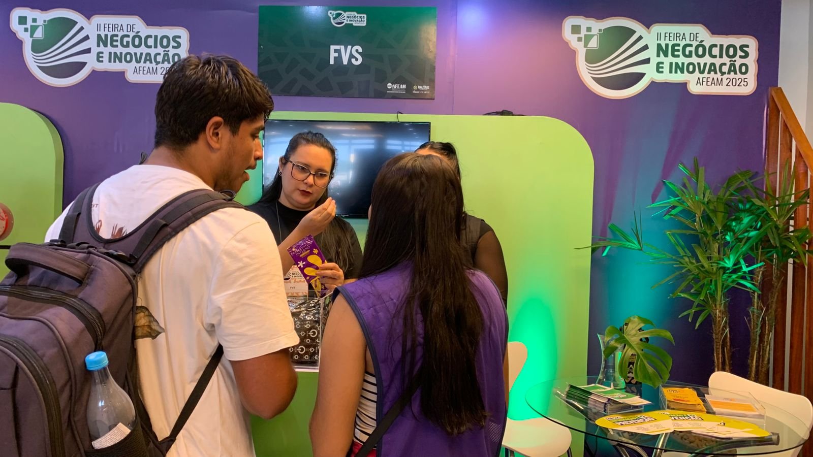 A estudante Ayume Freitas, de 21 anos, destacou a relevância da iniciativa. “A Feira de Negócios e Inovação da AFEAM 2025 tem sido uma oportunidade incrível. A distribuição gratuita de autotestes de HIV, preservativos e gel, junto às orientações oferecidas, torna a visita ao estande da FVS-RCP muito esclarecedora e útil”, afirmou