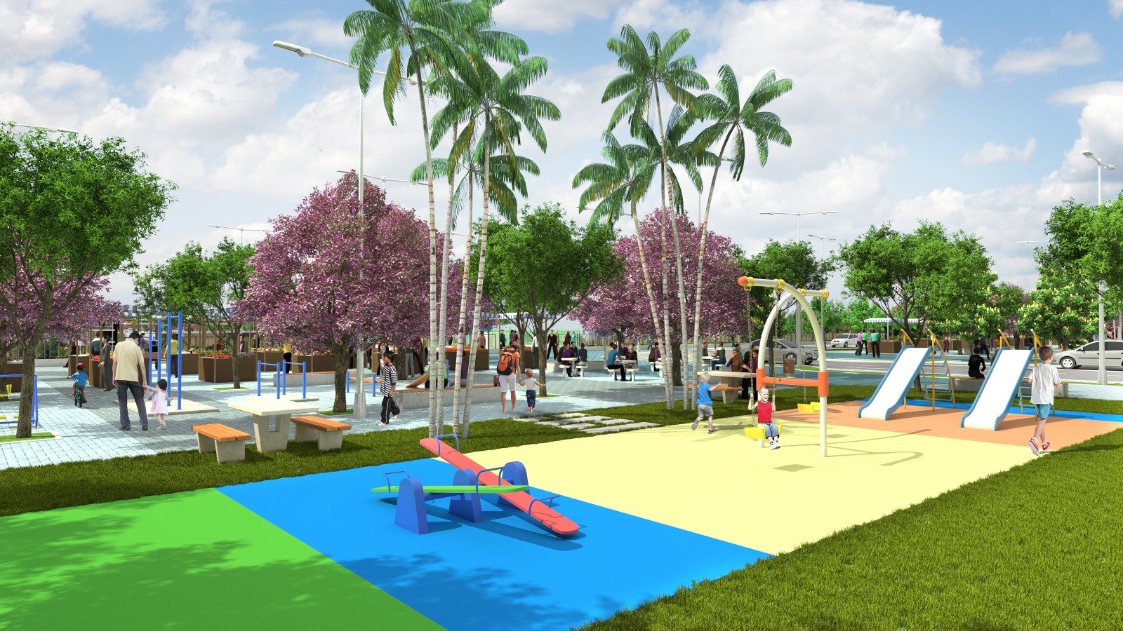 Entre os empreendimentos previstos está o Parque Santa Clara, localizado no bairro de mesmo nome, ao norte da área de intervenção. O espaço terá 2.771,03 metros quadrados e contará com calçadão com três metros de largura, áreas verdes, mobiliário urbano, iluminação ornamental, estacionamento e rampas de acessibilidade, assegurando inclusão e mobilidade para pessoas com deficiência.