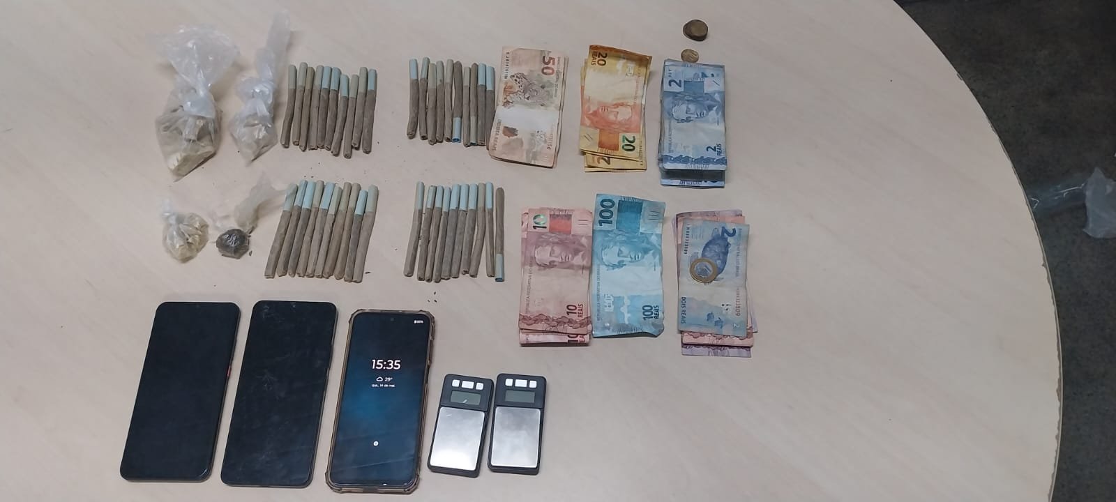 Durante a fuga, o grupo abandonou 40 cigarros de maconha, uma porção da mesma substância, três porções de oxi, dois celulares, R$ 563 em espécie e duas balanças de precisão. Na sequência, os suspeitos pularam na água e fugiram. Todo o material foi encaminhado ao 1º Distrito Integrado de Polícia (DIP).