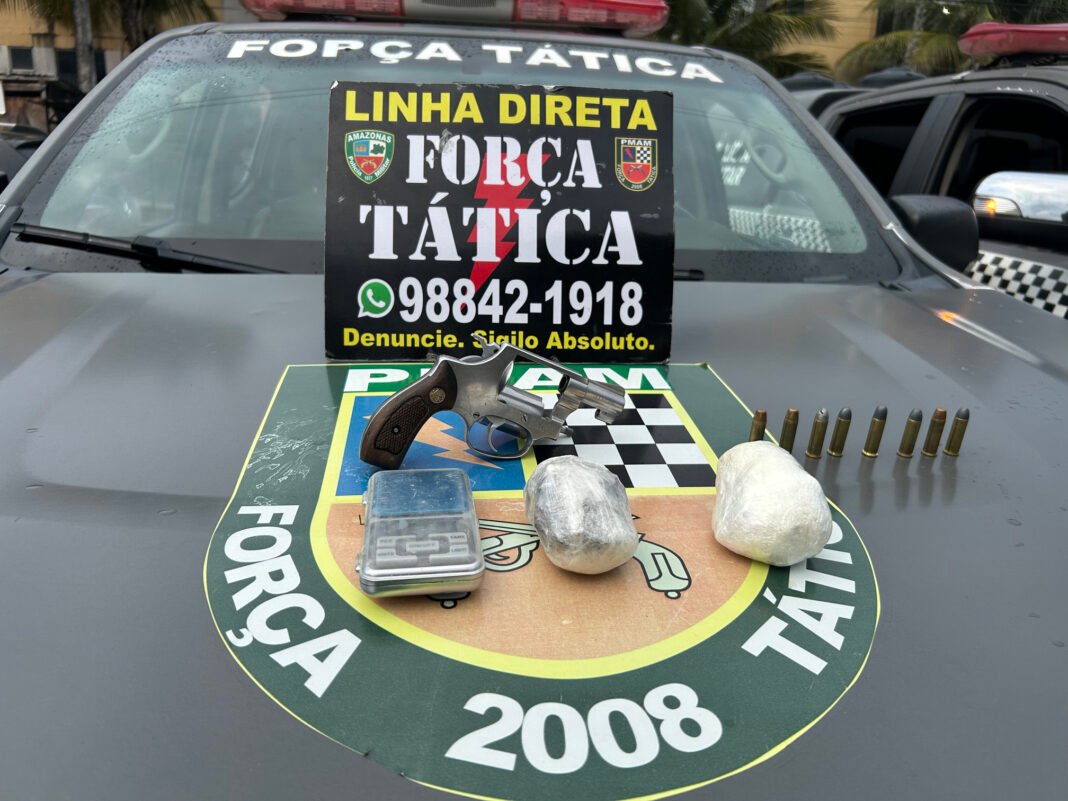 Em busca pessoal, foi encontrada uma bolsa preta com um revólver calibre 38, com 10 munições e várias porções de entorpecente. O homem, de 42 anos, foi conduzido com todo o material ilícito, para o 6º Distrito Integrado de Polícia (DIP), onde também foi apresentada a outra arma apreendida durante a operação.