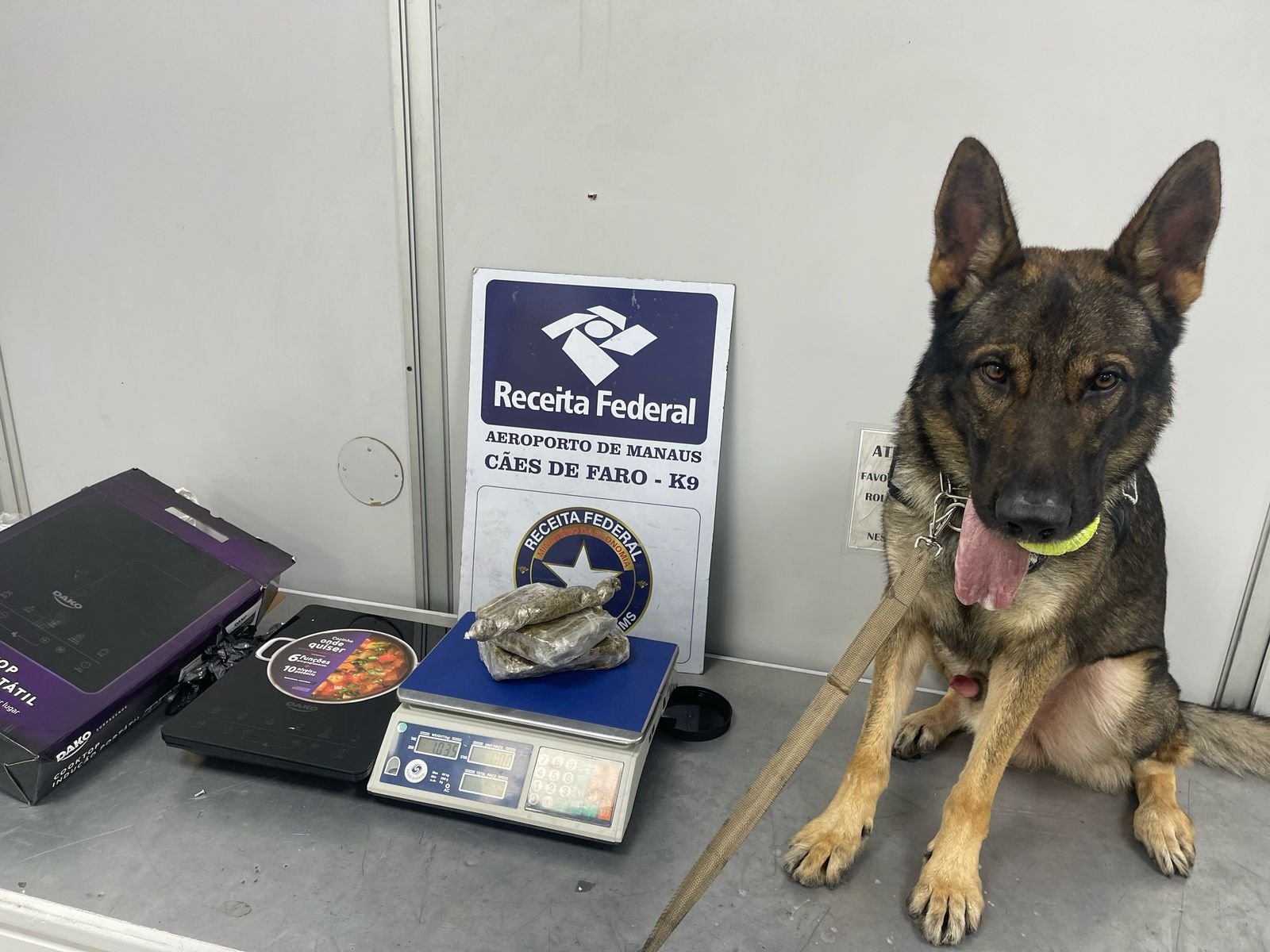 A Equipe K9 da Receita Federal em Manaus realizou, no período de 16 a 18/03, operações de combate ao contrabando e descaminho no Centro de Tratamento de Cartas e Encomendas – CTCE e no Terminal de Carga do Aeroporto Internacional Eduardo Gomes – TECA, que resultou na apreensão maconha em um cooktopo e em caixas de sabão em pó.