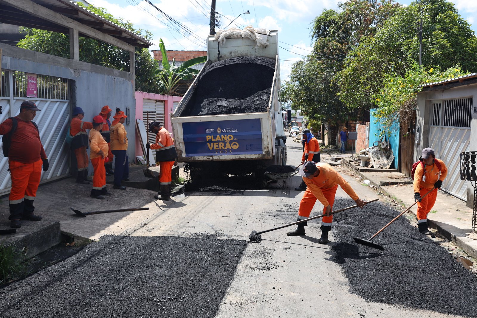 A Prefeitura de Manaus, por meio da Secretaria Municipal de Infraestrutura (Seminf), intensificou, nesta terça-feira, 29/7, os trabalhos de tapa-buracos do “Plano de Verão”, levando recuperação asfáltica para ruas da comunidade Parque São Pedro, no bairro Tarumã, zona Oeste da cidade.